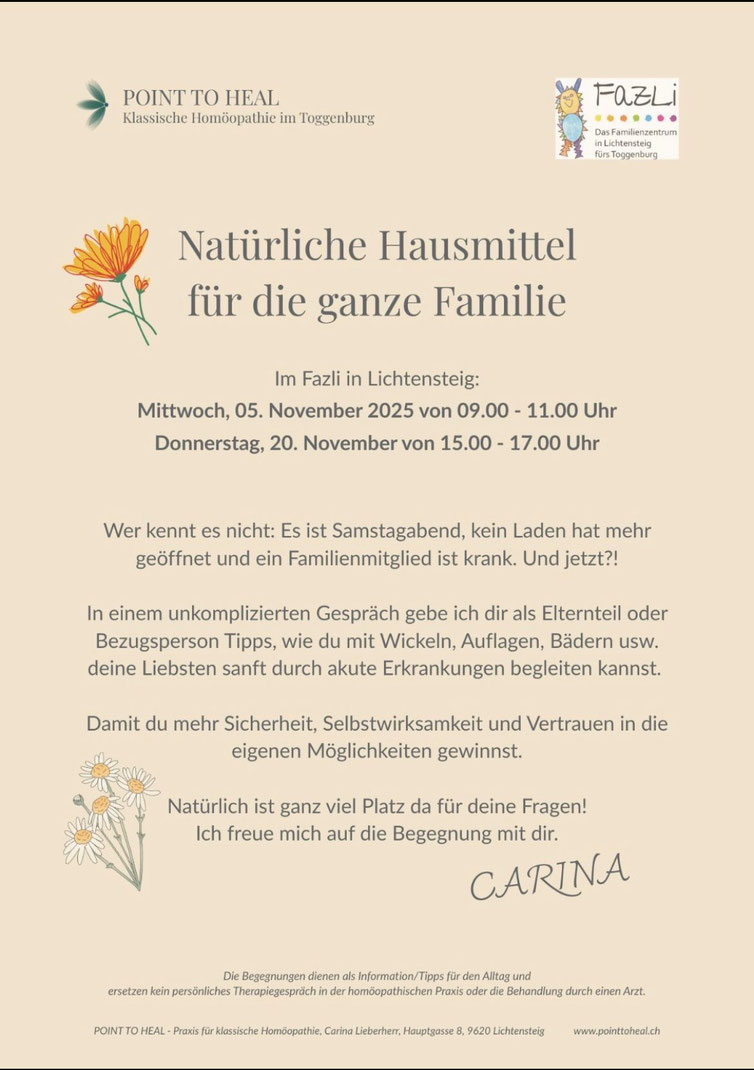 Vom 20. Juli bis 8. August 2023 macht das FazLi Sommerpause. Mütter und Väter Beratungsangebote finden über den Sommer normal statt. Siehe www.muetterberatung-toggenburg.ch